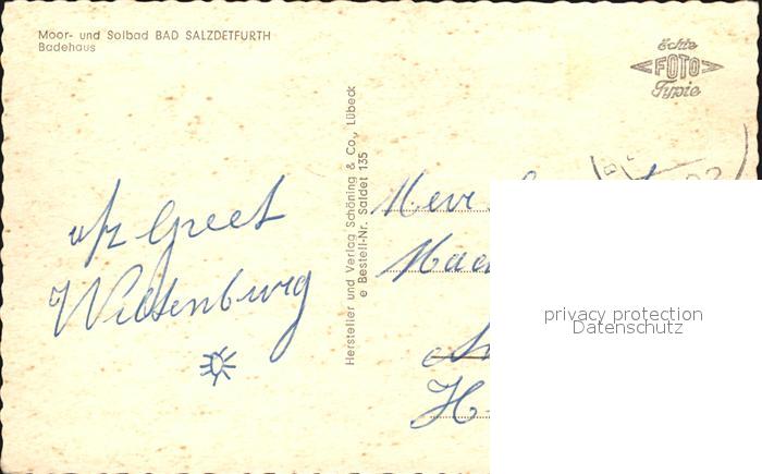 72408929 alte Postkarte Bad Salzdetfurth Badehaus postalisch gelaufen Erhaltung siehe scans KatCode: 11110003254005