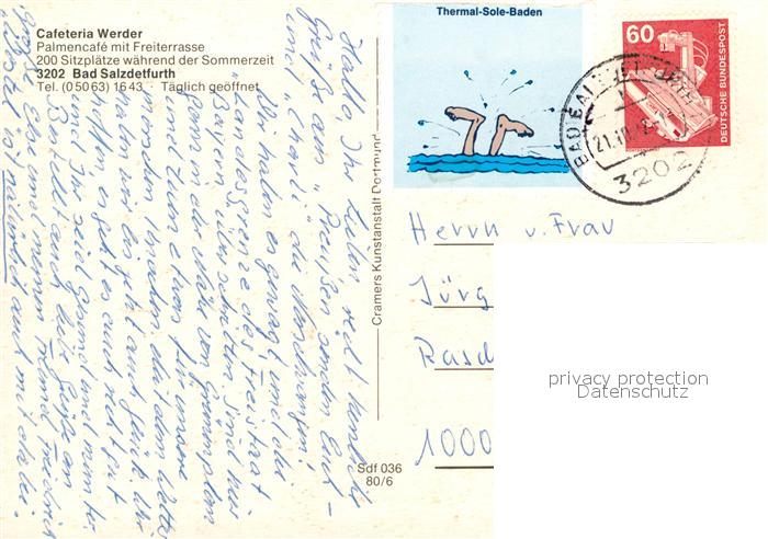 73229514 alte Postkarte Bad Salzdetfurth Cafeteria Werder postalisch gelaufen Erhaltung siehe scans [NatalD47] KatCode: 11110003254005