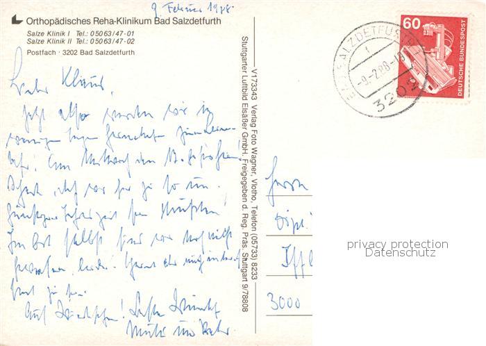 73785079 alte Postkarte Bad Salzdetfurth Fliegeraufnahme Orthopaedisches Reha-Klinikum postalisch gelaufen Erhaltung siehe scans [LiesaD40] KatCode: 11110003254005