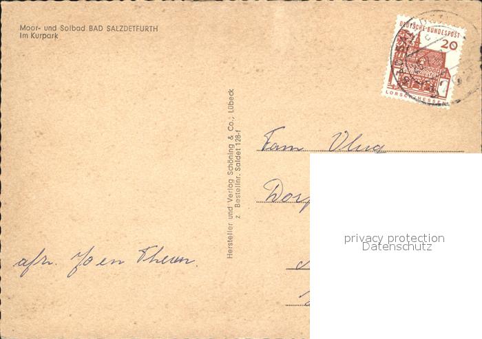 72494727 alte Postkarte Bad Salzdetfurth Kurpark postalisch gelaufen Erhaltung siehe scans KatCode: 11110003254005