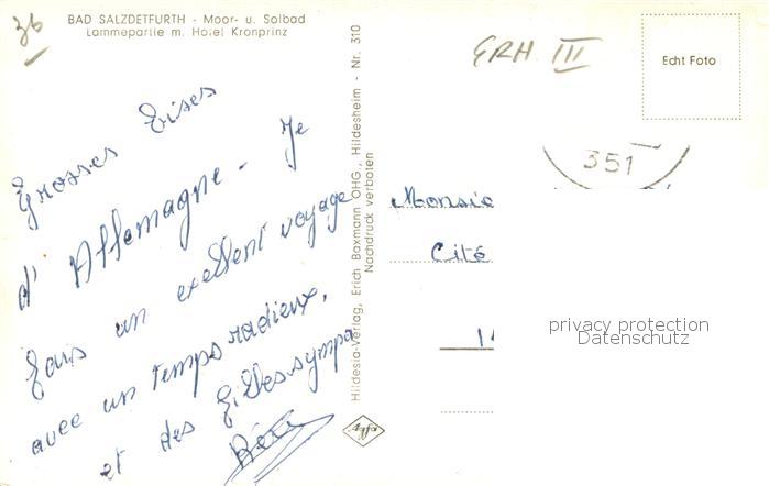 73781381 alte Postkarte Bad Salzdetfurth Lammepartie mit Hotel Kronprinz postalisch gelaufen Erhaltung siehe scans [WerneD78] KatCode: 11110003254005