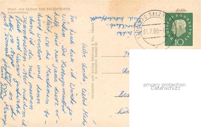 73759799 alte Postkarte Bad Salzdetfurth Moor- u. Solbad Schwimmbad postalisch gelaufen Erhaltung siehe scans [LiesaD40] KatCode: 11110003254005