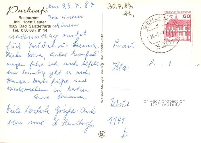 73859011 alte Postkarte Bad Salzdetfurth Park Cafe Terrasse postalisch gelaufen Erhaltung siehe scans [WerneD78] KatCode: 11110003254005