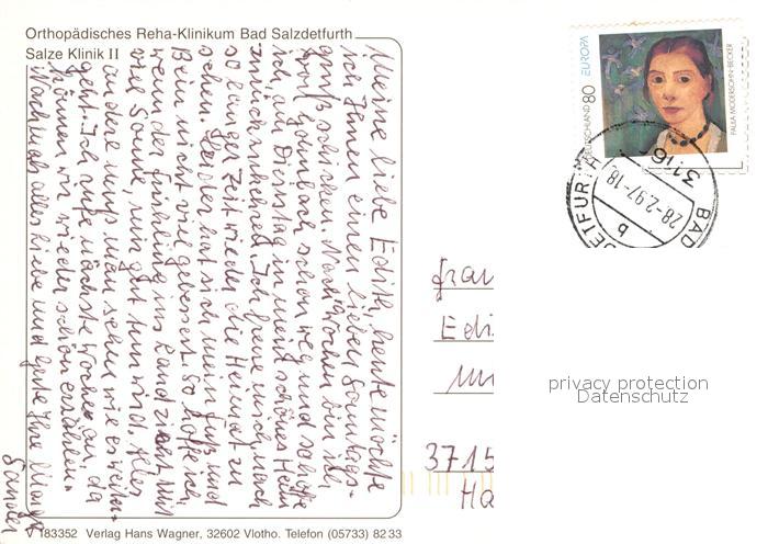 73008827 alte Postkarte Bad Salzdetfurth Salze Klinik Reha Klinikum Rezeption Zimmer Massage Gastraeume Hallebad Moorbad postalisch gelaufen Erhaltung siehe scans [WerneD78] KatCode: 11110003254005