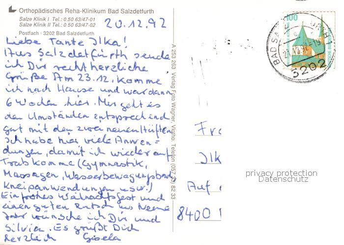 72993747 alte Postkarte Bad Salzdetfurth Salze Klinik Thermalsolebad Kurpark Kirche postalisch gelaufen Erhaltung siehe scans [AndreD76] KatCode: 11110003254005