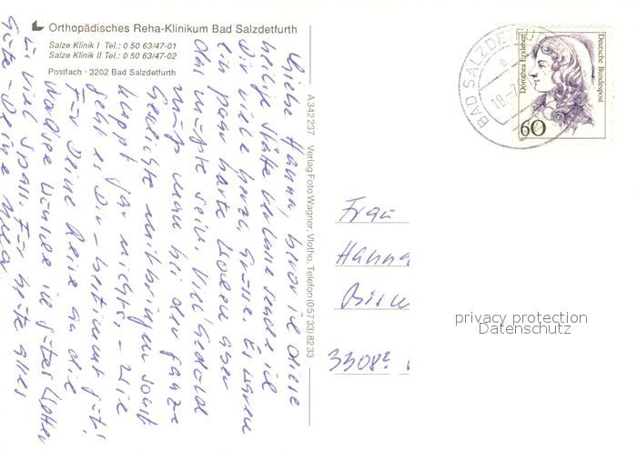 73119001 alte Postkarte Bad Salzdetfurth Salzeklinik Ortsmitte Lamme postalisch gelaufen Erhaltung siehe scans [NatalD47] KatCode: 11110003254005