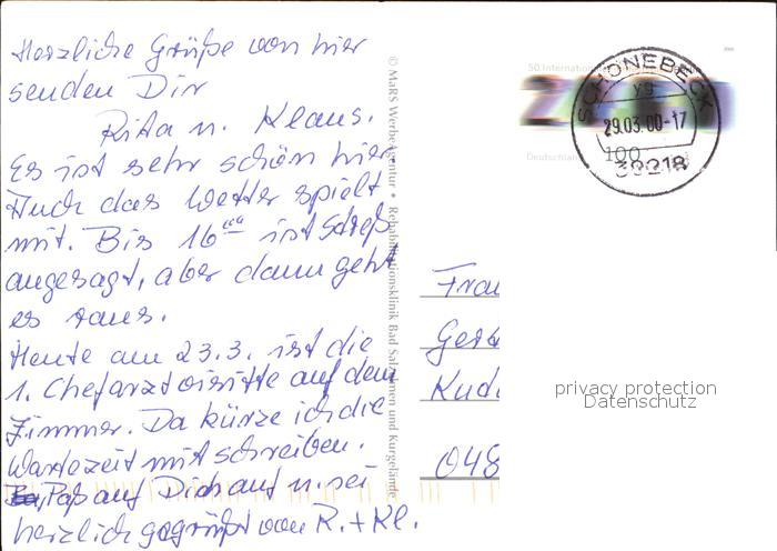 72523203 alte Postkarte Bad Salzelmen Rehabilitationsklinik postalisch gelaufen Erhaltung siehe scans KatCode: 11110015089305