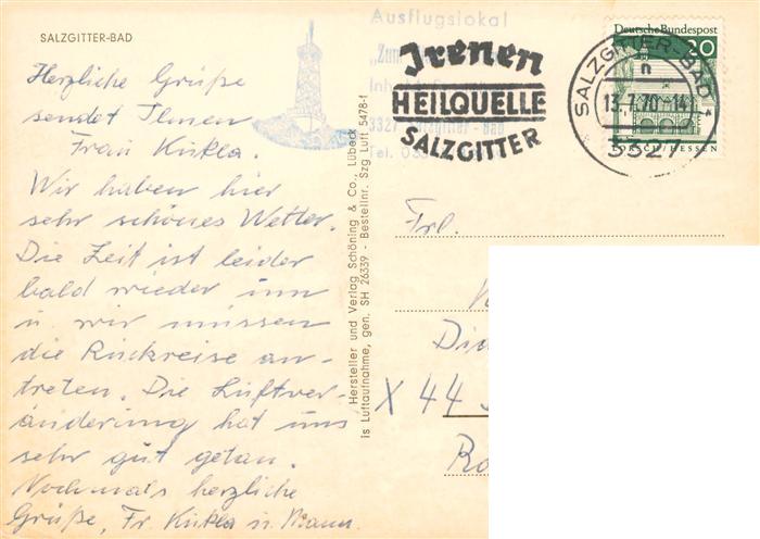 73882031 alte Postkarte Bad Salzgitter Fliegeraufnahme postalisch gelaufen Erhaltung siehe scans [FriedD77] KatCode: 11110003102000