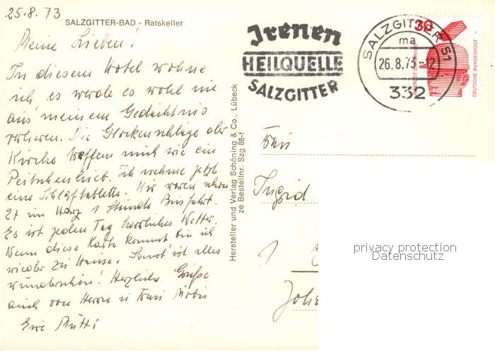 73860312 alte Postkarte Bad Salzgitter Ratskeller postalisch gelaufen Erhaltung siehe scans [WerneD78] KatCode: 11110003102000