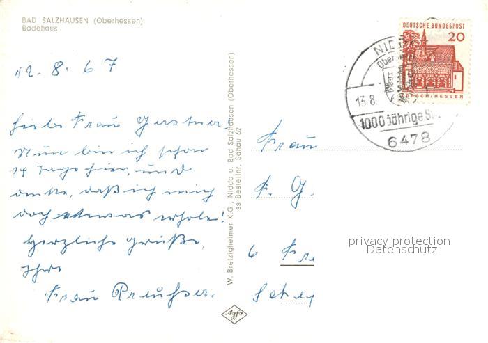 73251794 alte Postkarte Bad Salzhausen Badehaus postalisch gelaufen Erhaltung siehe scans [KathaD81] KatCode: 11110006440016