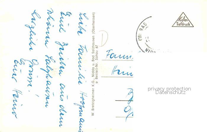72794681 alte Postkarte Bad Salzhausen Barock-Haeuschen Kurhaus Wasserrad Golfplatz Badehaus postalisch gelaufen Erhaltung siehe scans [LiesaD40] KatCode: 11110006440016