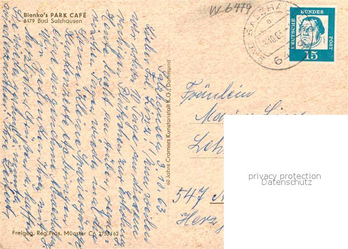 72883680 alte Postkarte Bad Salzhausen Bienkos Park Cafe Fliegeraufnahme postalisch gelaufen Erhaltung siehe scans [WerneD78] KatCode: 11110006440016