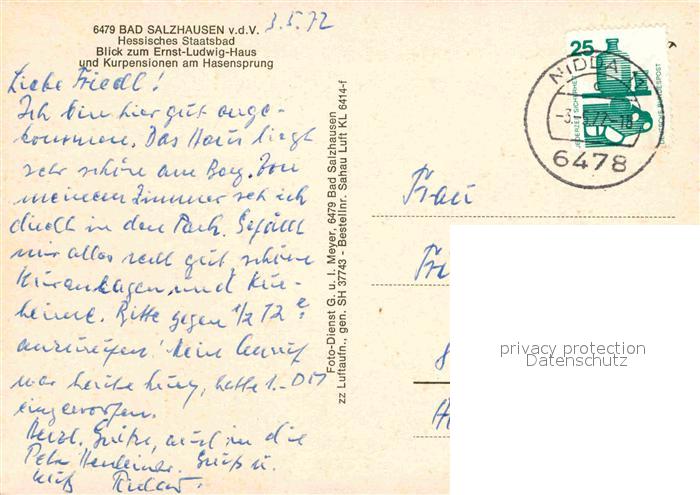 72842351 alte Postkarte Bad Salzhausen Ernst-Ludwig-Haus Kurpensionen am Hasensprung postalisch gelaufen Erhaltung siehe scans [PaolaD17] KatCode: 11110006440016