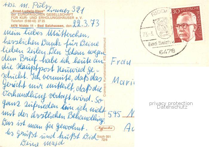 73087354 alte Postkarte Bad Salzhausen Ernst-Ludwig-Haus postalisch gelaufen Erhaltung siehe scans [PaolaD17] KatCode: 11110006440016