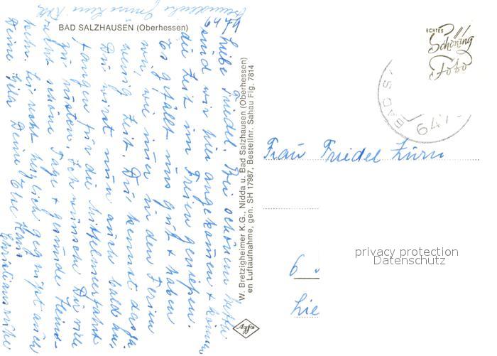 73116203 alte Postkarte Bad Salzhausen Fliegeraufnahme postalisch gelaufen Erhaltung siehe scans [NatalD47] KatCode: 11110006440016