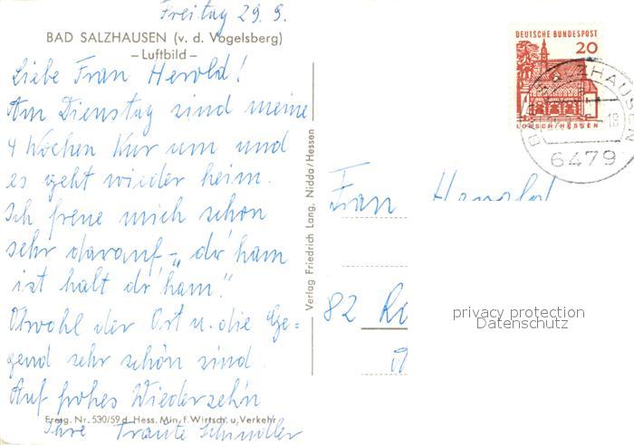 72967722 alte Postkarte Bad Salzhausen Fliegeraufnahme postalisch gelaufen Erhaltung siehe scans [NatalD47] KatCode: 11110006440016
