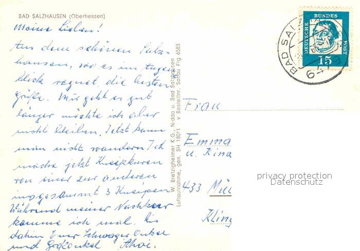 72845471 alte Postkarte Bad Salzhausen Fliegeraufnahme postalisch gelaufen Erhaltung siehe scans [AndreD76] KatCode: 11110006440016