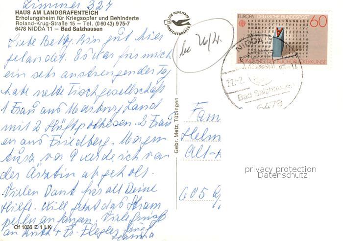 73241040 alte Postkarte Bad Salzhausen Fliegeraufnahme Haus am Landgrafenteich postalisch gelaufen Erhaltung siehe scans [KathaD81] KatCode: 11110006440016