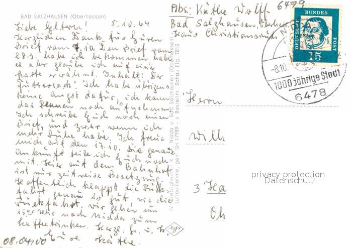 72917920 alte Postkarte Bad Salzhausen Fliegeraufnahme Haus Christiansruh postalisch gelaufen Erhaltung siehe scans [WerneD78] KatCode: 11110006440016