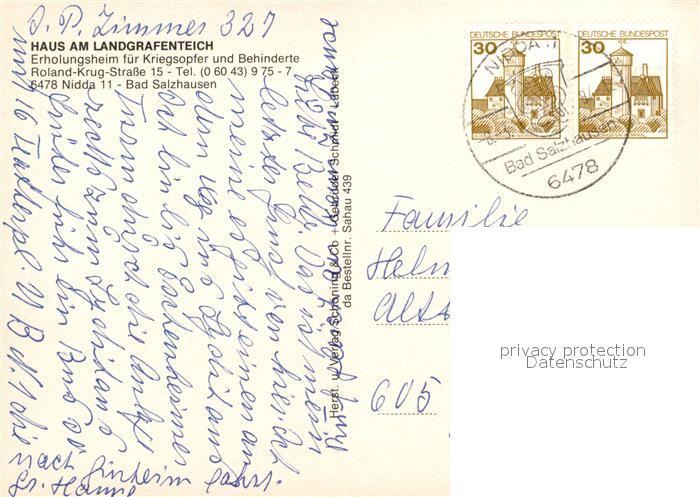 73241041 alte Postkarte Bad Salzhausen Haus am Landgrafenteich postalisch gelaufen Erhaltung siehe scans [KathaD81] KatCode: 11110006440016
