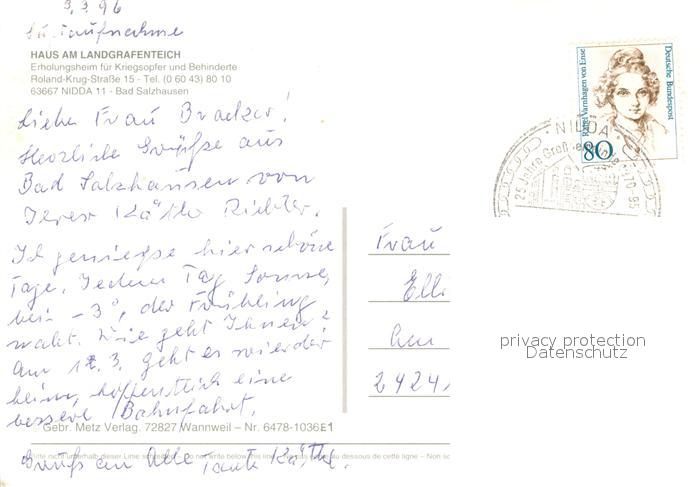 73688428 alte Postkarte Bad Salzhausen Haus am Landgrafenteich Erholungsheim Fliegeraufnahme postalisch gelaufen Erhaltung siehe scans [FriedD77] KatCode: 11110006440016