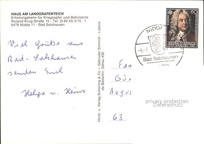 72546588 alte Postkarte Bad Salzhausen Haus am Landgrafenteich Erholungsheim fuer Kriegsopfer und Behinderte postalisch gelaufen Erhaltung siehe scans [AndreD76 kv012box] KatCode: 11110006440016