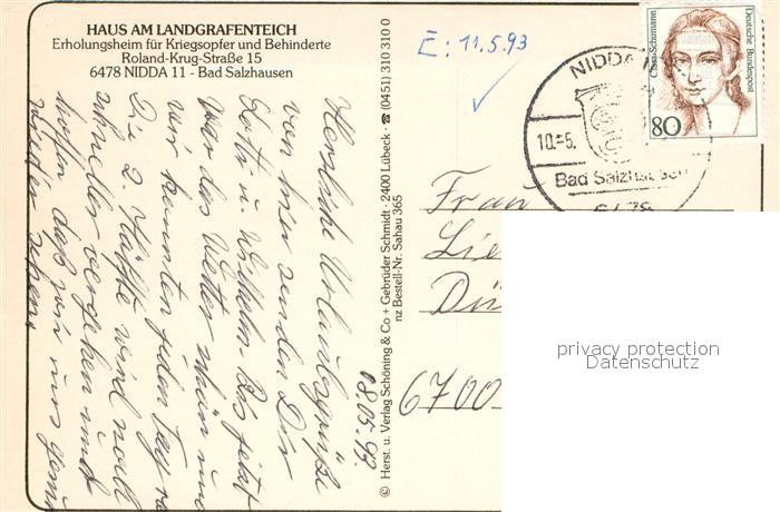 73726772 alte Postkarte Bad Salzhausen Haus am Landgrafenteich Erholungsheim Hallenbad postalisch gelaufen Erhaltung siehe scans [FriedD77] KatCode: 11110006440016