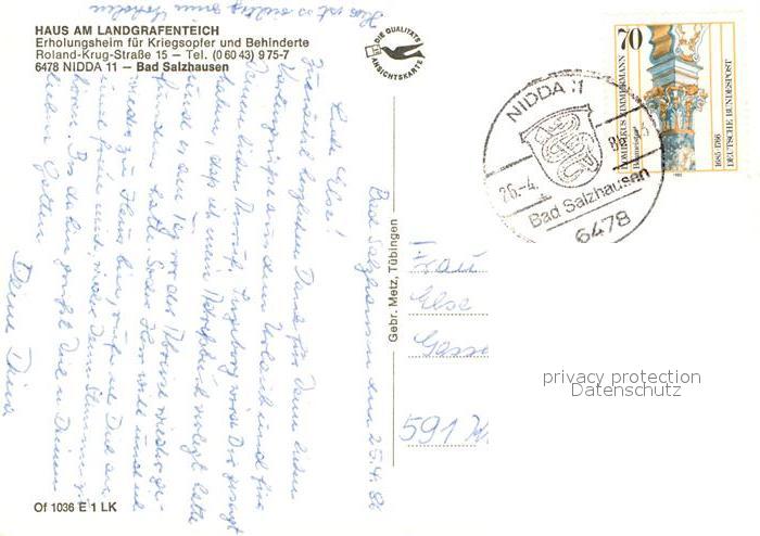 73090195 alte Postkarte Bad Salzhausen Haus am Landgrafenteich Fliegeraufnahme postalisch gelaufen Erhaltung siehe scans [PaolaD17] KatCode: 11110006440016