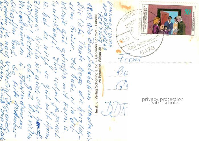 72914801 alte Postkarte Bad Salzhausen Haus am Landgrafenteich Wasserrad Kurklinik Bergfried Kurheim Fliegeraufnahme postalisch gelaufen Erhaltung siehe scans [FriedD77] KatCode: 11110006440016