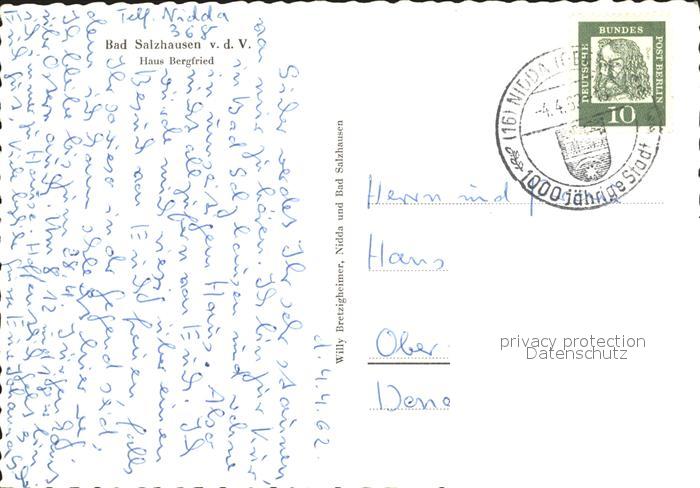 72131750 alte Postkarte Bad Salzhausen Haus Bergfried postalisch gelaufen Erhaltung siehe scans KatCode: 11110006440016