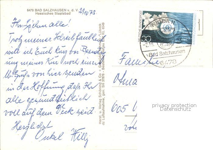 72223324 alte Postkarte Bad Salzhausen Hessisches Staatsbad Fliegeraufnahme postalisch gelaufen Erhaltung siehe scans KatCode: 11110006440016