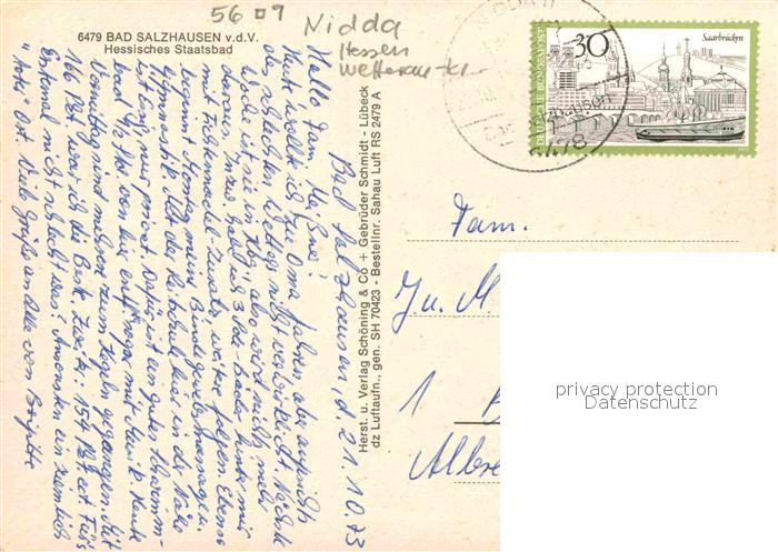 72914750 alte Postkarte Bad Salzhausen Hessisches Staatsbad Fliegeraufnahme postalisch gelaufen Erhaltung siehe scans [FriedD77] KatCode: 11110006440016