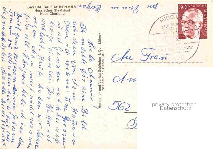 72725862 alte Postkarte Bad Salzhausen Hessisches Staatsbad Haus Charlotte postalisch gelaufen Erhaltung siehe scans [WerneD78] KatCode: 11110006440016