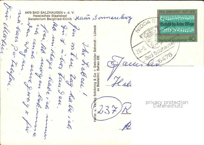72541113 alte Postkarte Bad Salzhausen Hessisches Staatsbad Sanatorium Bergfried Klinik postalisch gelaufen Erhaltung siehe scans [AndreD76 kt119box] KatCode: 11110006440016