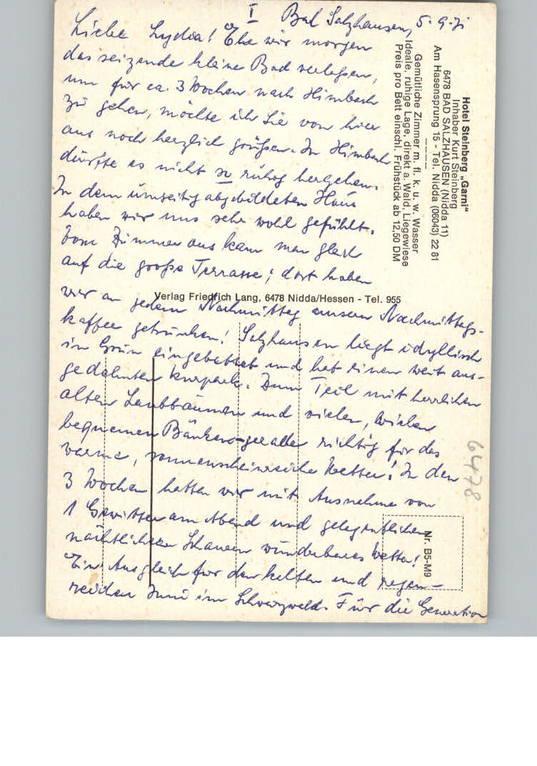 31146061 Bad Salzhausen Hotel garni Steinberg postalisch nicht gelaufen KatCode: 11110006440016