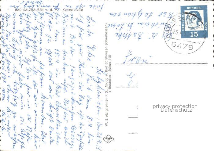 72275366 alte Postkarte Bad Salzhausen Konzerthalle postalisch gelaufen Erhaltung siehe scans KatCode: 11110006440016