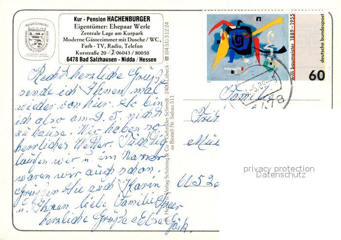 73241034 alte Postkarte Bad Salzhausen Kur Pension Hachenburger postalisch gelaufen Erhaltung siehe scans [KathaD81] KatCode: 11110006440016
