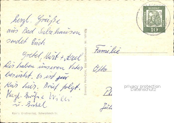 72112636 alte Postkarte Bad Salzhausen Kuranlagen Barockhaeuschen Saline postalisch gelaufen Erhaltung siehe scans KatCode: 11110006440016
