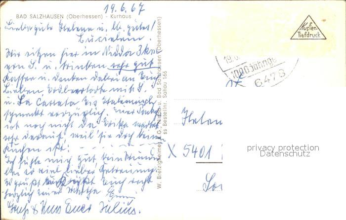 72186613 alte Postkarte Bad Salzhausen Kurhaus postalisch gelaufen Erhaltung siehe scans KatCode: 11110006440016