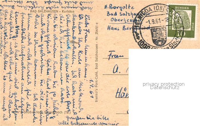 73293295 alte Postkarte Bad Salzhausen Kurhaus postalisch gelaufen Erhaltung siehe scans [WerneD78] KatCode: 11110006440016