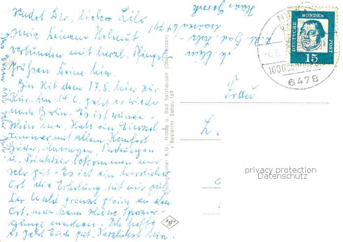 73298314 alte Postkarte Bad Salzhausen Kurhaus Badehaus Wasserrad Schwanenteich postalisch gelaufen Erhaltung siehe scans [PaolaD17] KatCode: 11110006440016