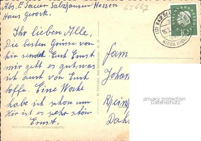 72099004 alte Postkarte Bad Salzhausen Kurhaus Saline Anlagen Badehaus Trinkhalle Wasserrad postalisch gelaufen Erhaltung siehe scans KatCode: 11110006440016