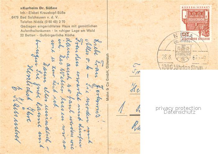 73726280 alte Postkarte Bad Salzhausen Kurheim Dr. Suesse Speisesaal postalisch gelaufen Erhaltung siehe scans [FriedD77] KatCode: 11110006440016