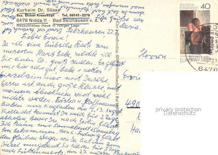 73684227 alte Postkarte Bad Salzhausen Kurheim Dr. Suesse postalisch gelaufen Erhaltung siehe scans [LiesaD40] KatCode: 11110006440016