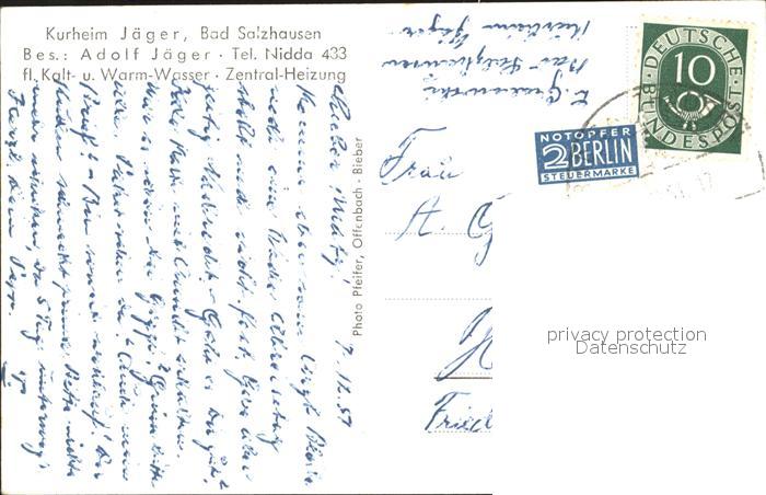72029663 alte Postkarte Bad Salzhausen Kurheim Jaeger postalisch gelaufen KatCode: 11110006440016