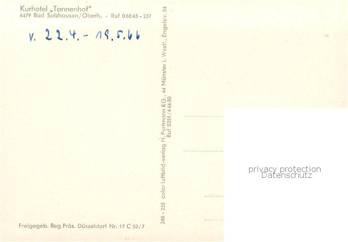 73803651 Bad Salzhausen Kurhotel Tannenhof Fliegeraufnahme postalisch nicht gelaufen Erhaltung siehe scans [WerneD78] KatCode: 11110006440016