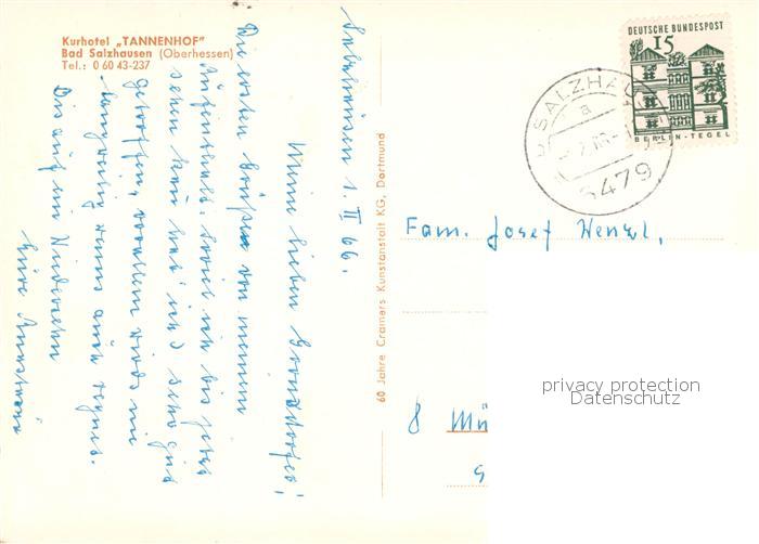 73804446 alte Postkarte Bad Salzhausen Kurhotel Tannenhof Freiterrasse postalisch gelaufen Erhaltung siehe scans [WerneD78] KatCode: 11110006440016