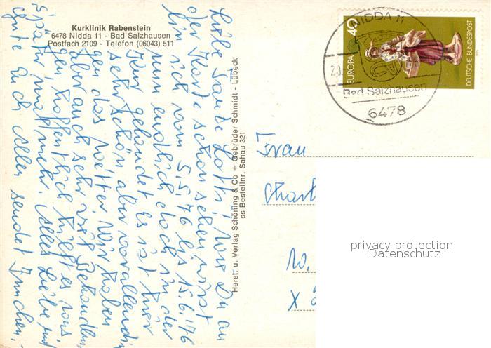 73652662 alte Postkarte Bad Salzhausen Kurklinik Rabenstein Restaurant Hallenbad postalisch gelaufen Erhaltung siehe scans [FriedD77] KatCode: 11110006440016