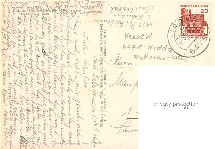 72914744 alte Postkarte Bad Salzhausen mit Ernst Ludwig Heim Fliegeraufnahme postalisch gelaufen Erhaltung siehe scans [FriedD77] KatCode: 11110006440016