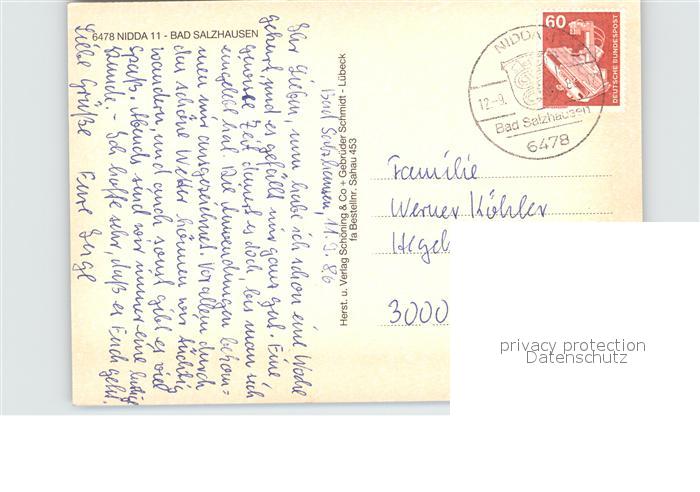 72482017 alte Postkarte Bad Salzhausen Nidda Schwimmbad Muehlenrad Kirche postalisch gelaufen Erhaltung siehe scans KatCode: 11110006440016